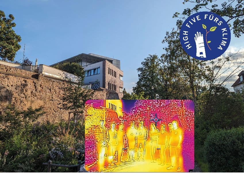 Die Teilnehmerinnen und Teilnehmer können während des Rundgangs selbst Luft- und Oberflächentemperaturen mittels einer Thermalkamera messen.