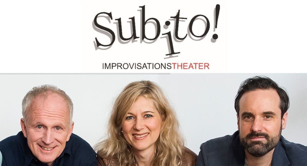 SUBITO! „Wiesbadens Aushängeschild für Spontantheater“ feiert den menschlichen Geist reich an Fantasie. Sie liefern ein Stichwort und Bernhard Mohr, Helga Liewald und Musiker Michael Bibo machen Ihnen eine Szene. Da stehen Vollblutschauspieler auf der Bühne, die zum Vergnügen des Publikums Ihren und ihren Ideen freien Lauf lassen. Jede Szene eine Welturaufführung.