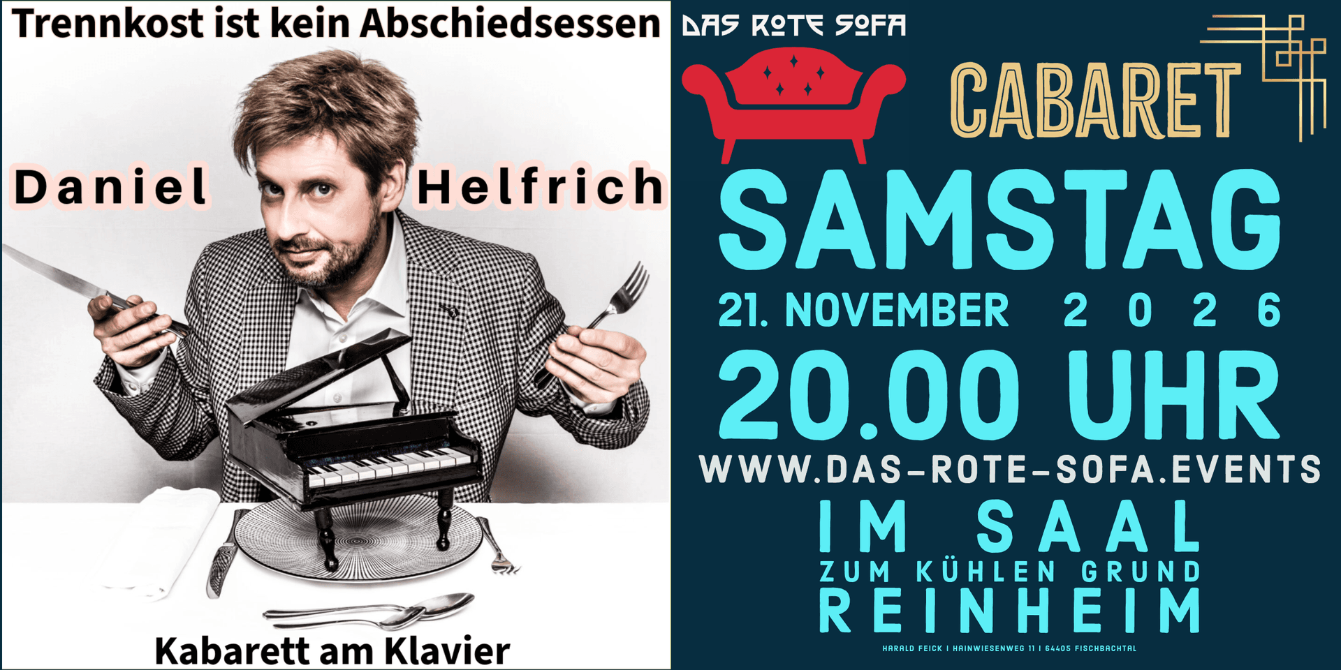In seinem neuen Programm „Trennkost ist kein Abschiedsessen“ befreit Daniel Helfrich das Thema „Trennung“ von seinem schlechten Ruf und entdeckt darin vor allem eines: riesengroßen Spaß.