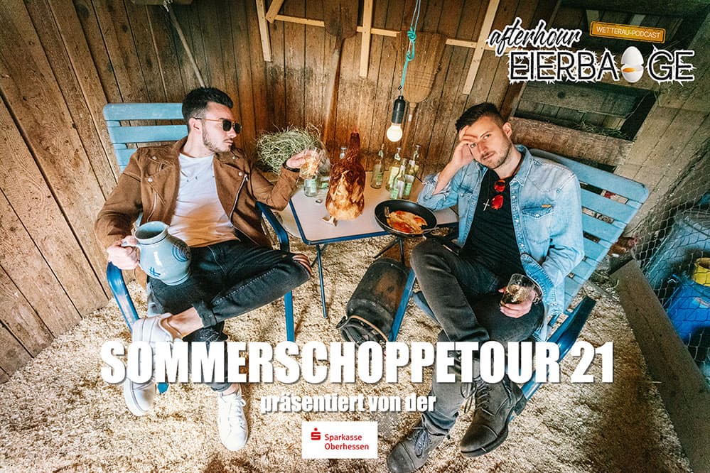 Das gabs’s in der Wetterau noch nie! Afterhour Eierbagge geht auf Sommerschoppe-Livetour - das Besondere: Eine Show aus Podcast und Konzert - sozusagen ein PODZERT! Das Programm wird ein Mix aus buntem Entertainment, regionalen und überregionalen Gästen und handgemachter Livemusik sein. Die erste Stunde wird ein reiner „Podcast-Teil“ sein, in der zweiten Stunde gibt es Livemusik mit den selbst produzierten Songs inklusive der frisch formierten Eierbagge-Band auf die Ohren der Zuschauer - ein Rock’n’Roll-Konzert im Wetterau-Stil!