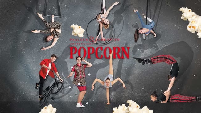Ihre Show ist poetisch und voller Charme – dabei auch explosiv und physisch. Ob Jonglage, Luftartistik oder Bodenakrobatik, das gesamte Spektrum der artistischen Künste wird bei dieser Feier mit großer Spielfreude und echtem Spaß an dieser so artifiziellen Arbeit dargeboten. Vorhang auf für POPCORN!
