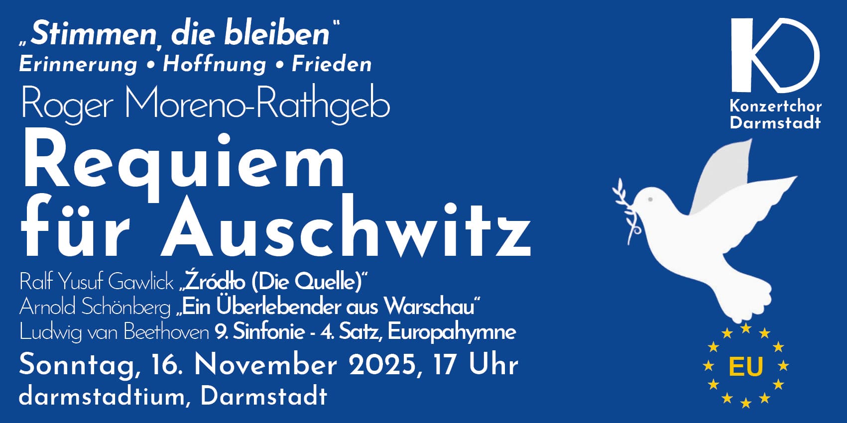 Am Sonntag, dem 16. November 2025, dem Volkstrauertag, gestaltet der Konzertchor Darmstadt zusammen mit dem Beethoven Akademie Orchester Krakau ein Friedenskonzert unter dem Titel „Stimmen, die bleiben - Erinnerung • Hoffnung • Frieden". Die Veranstaltung setzt ein bewusstes Zeichen: sie ehrt die Stimmen von Menschen und Kulturen, die das NS-Regime zum Schweigen bringen wollte, und lässt sie heute umso kraftvoller erklingen.
