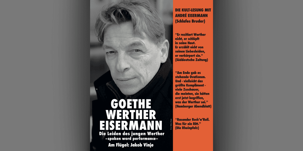 Zusammen mit dem Pianisten und Komponisten Jakob Vinje entwickelte Eisermann eine Spoken Word Performance zu Goethes Sturm und Drang-Meisterstück: Über den zarten Kompositionen Vinjes stürzt sich Eisermann in Werthers Worte und Gedanken und in die unerwiderten Gefühle gegenüber Lotte. Durch Eisermanns Interpretation werden Goethes Worte lebendig und eins deutlich: Die Liebe, und das Leiden an ihr, sind eine zeitlose Angelegenheit.