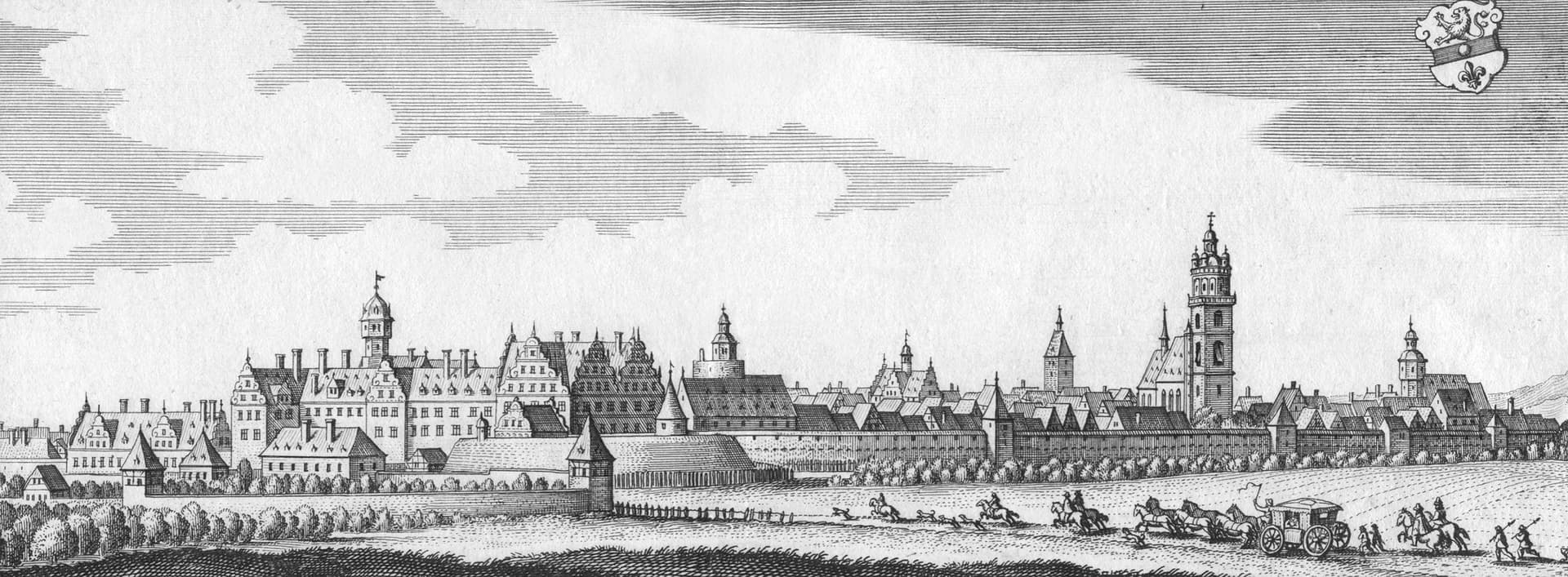 Nach der testamentarisch verfügten Landesteilung nimmt Georg I. den kleinen Ort Darmstadt, seine künftige Residenz, mit 19 Dienern und 17 Pferden in Besitz. Das Katzenelnbogner Wasserschloss befindet sich in ruinösem Zustand. Möbel und Geschirr muss sich der neue Landesfürst vorerst bei seinen Untertanen leihen. Ein bescheidener Anfang also.