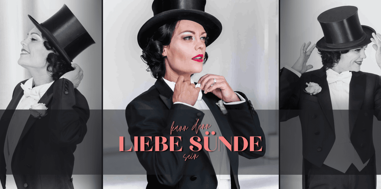 Die studierte Sängerin, Pianistin und Dirigentin vereint in ihrem Soloprogramm KANN DENN LIEBE SÜNDE SEIN als Kunstfigur DIE DAME IM FRACK historisches Interesse mit musikalisch-schauspielerischer Lebendigkeit in exklusivem Stil.