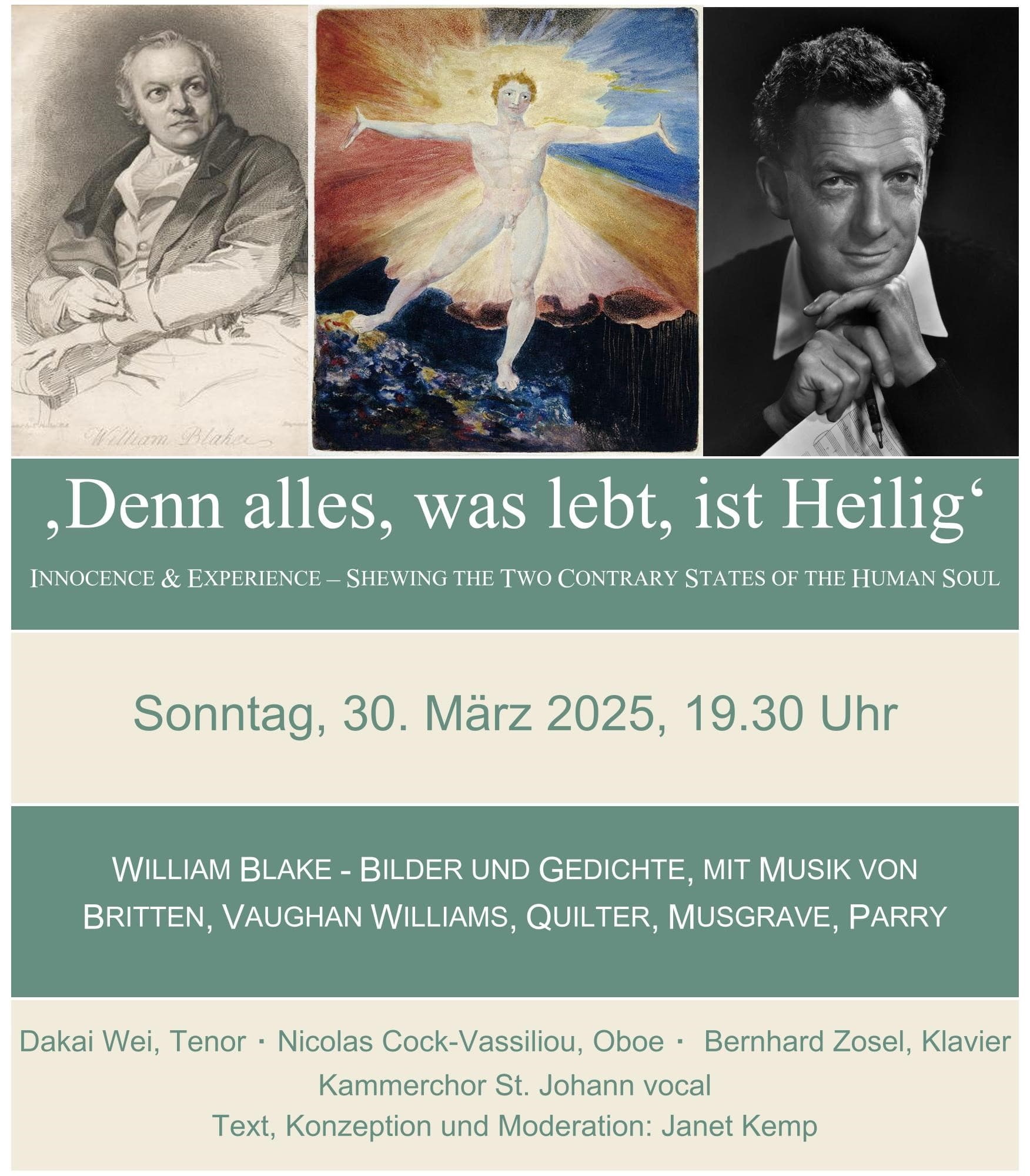 Er war Maler, Kupferstecher, Illustrator, Dichter, Buchhändler (für kurze Zeit), Erfinder der Reliefradierung, Naturmystiker, Philosoph, kurzum: eine schillernde Figur im England des 18. Jahrhunderts: William Blake, geboren 1757 als Sohn eines Londoner Händlers. Schon als kleines Kind hatte er mystische Visionen von Gott und Engeln. Seine Eltern waren misstrauisch gegenüber seinen Geschichten. Sie erkannten, dass ihr Sohn sich von den anderen Kindern unterschied und ließen ihn deswegen zu Hause unterrichten. Schon im Alter von 10 Jahren wusste er, dass er Künstler werden will.