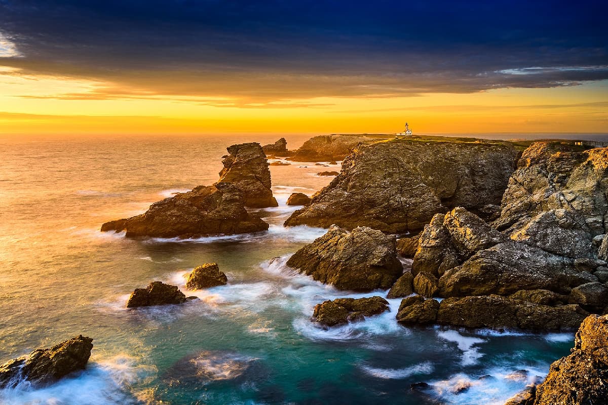Die Bretagne ist geprägt vom Meer: Zahllose Leuchttürme sprenkeln die Küste, endlose Sandstrände wandeln sich im Rhythmus des höchsten Tidenhubes Europas, Inseln wie Ouessant trotzen der Wucht der Winterstürme, Fischerdörfer ducken sich in tiefe Buchten und Städte wie Saint-Malo und Brest erzählen vom Leben der Menschen mit dem Meer.