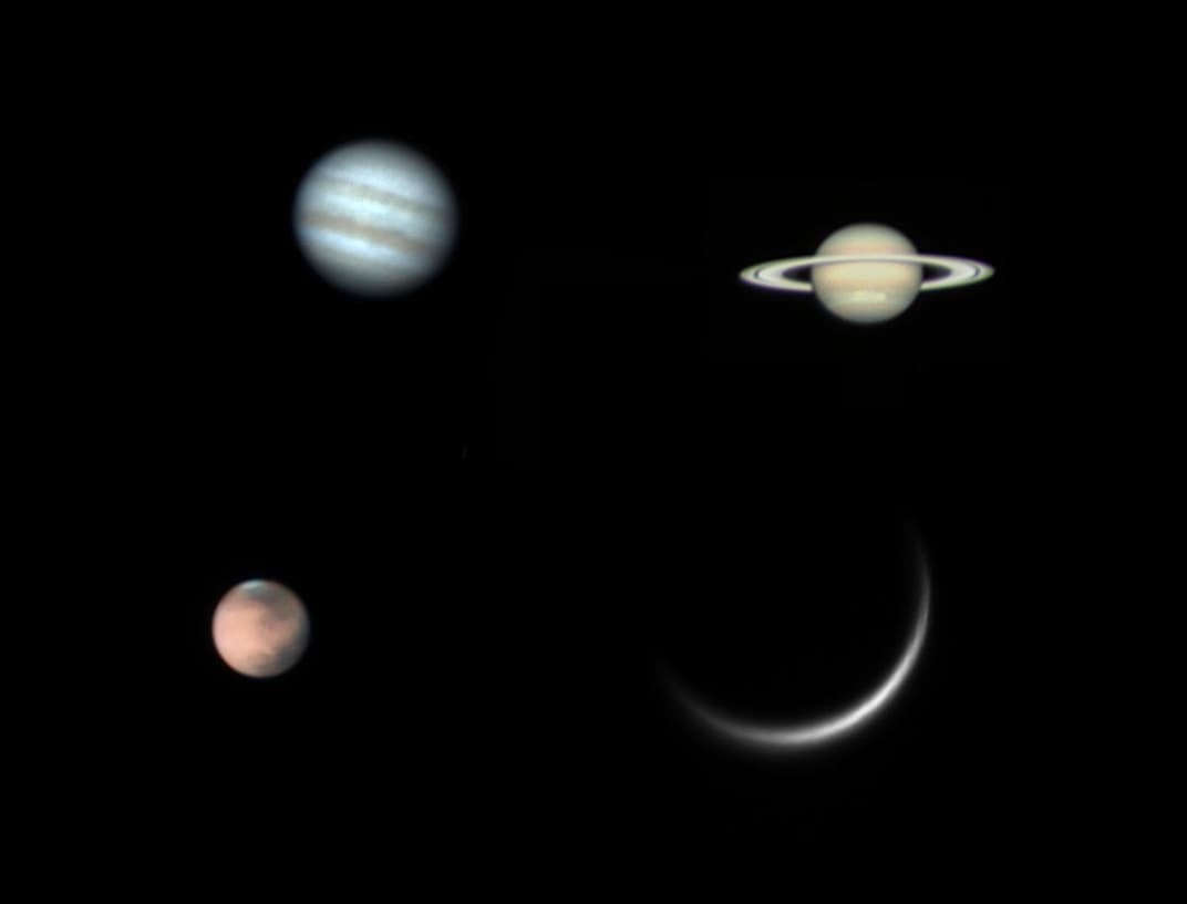 Ende Januar 2025 waren gleich sechs Planeten am Abendhimmel aufgereiht: Saturn, Venus, Neptun, Uranus, Jupiter und Mars. Mitte Februar erreichte die Venus ihren größten Glanz, während der Saturn in der Abenddämmerung verschwand. Anfang März kommt stattdessen kurzzeitig der Merkur hinzu.