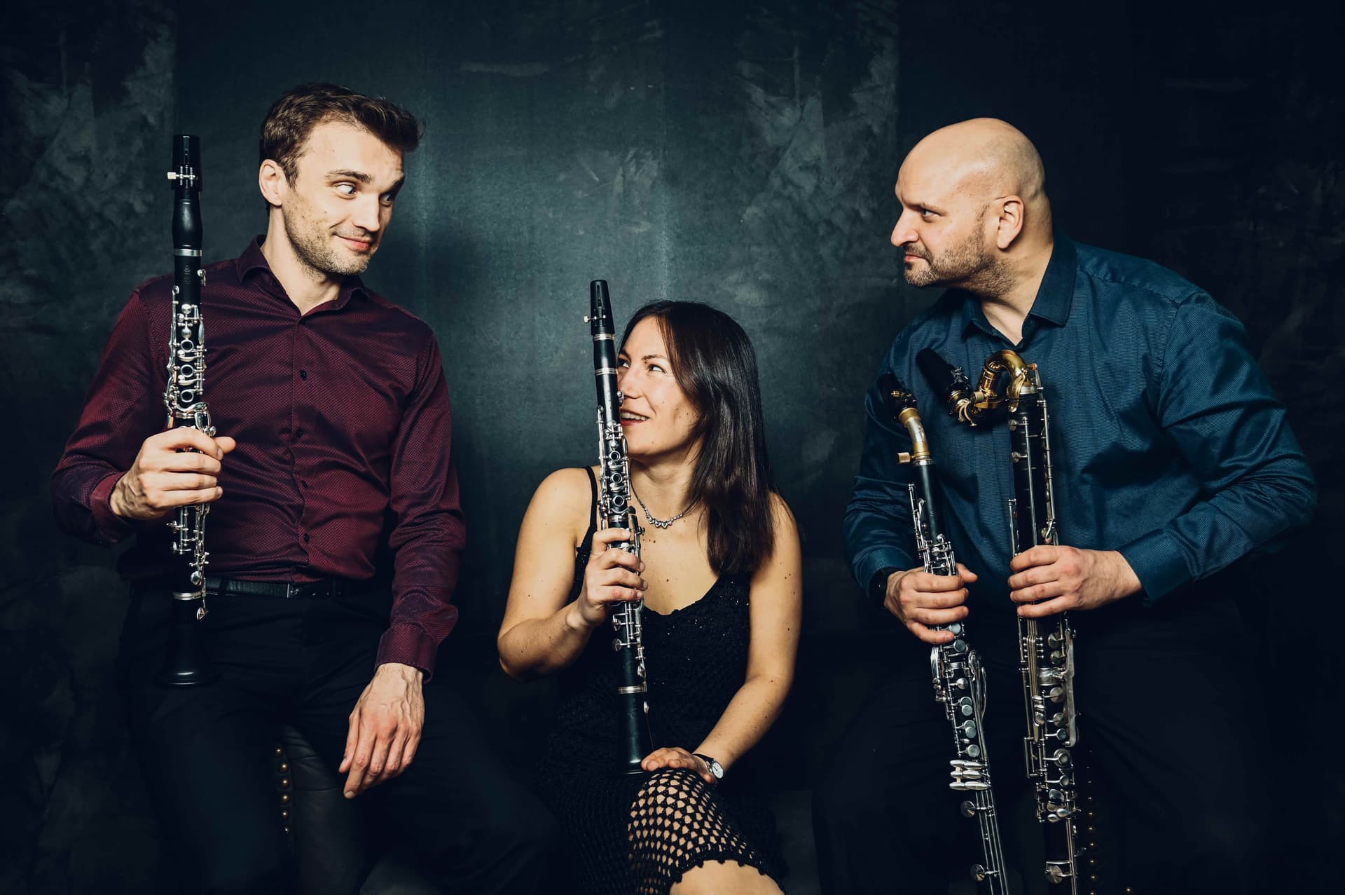 Das junge dynamische Klarinettentrio bietet feinste Kammermusik auf höchstem Niveau. Neben der außergewöhnlichen und seltenen Kombination von Klarinette, Bassetthorn und Bass-Klarinette zeichnet sich das Trio durch sprudelnde Spielfreude, magischen Dialog und homogenes Zusammenspiel aus. Im Sinne des Festivalmottos „Im Wechsel der Zeiten“ spannen Sayaka Schmuck, Johann-Peter Taferner und Kristóf Dömötör mit ihrem Programm den Bogen von Werken von klassischen Komponisten wie W. A. Mozart und J. Brahms den Wechsel der Zeiten zu Filmmusik und Tango bis hin zu bekannten Jazzkomponisten wie George Gershwin und Paul Desmond.