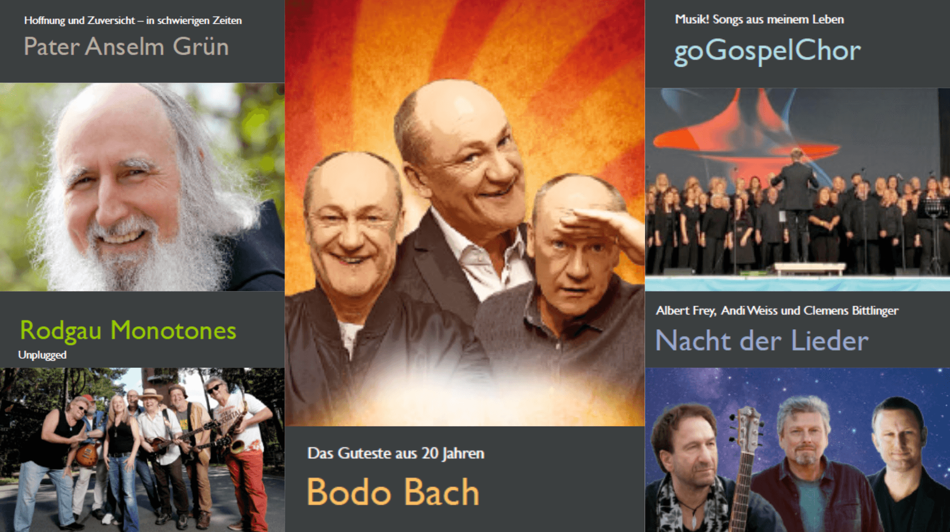 Pater Anselm Grün – Rodgau Monotones – Bodo Bach – Go-Gospelchor – Nacht der Lieder