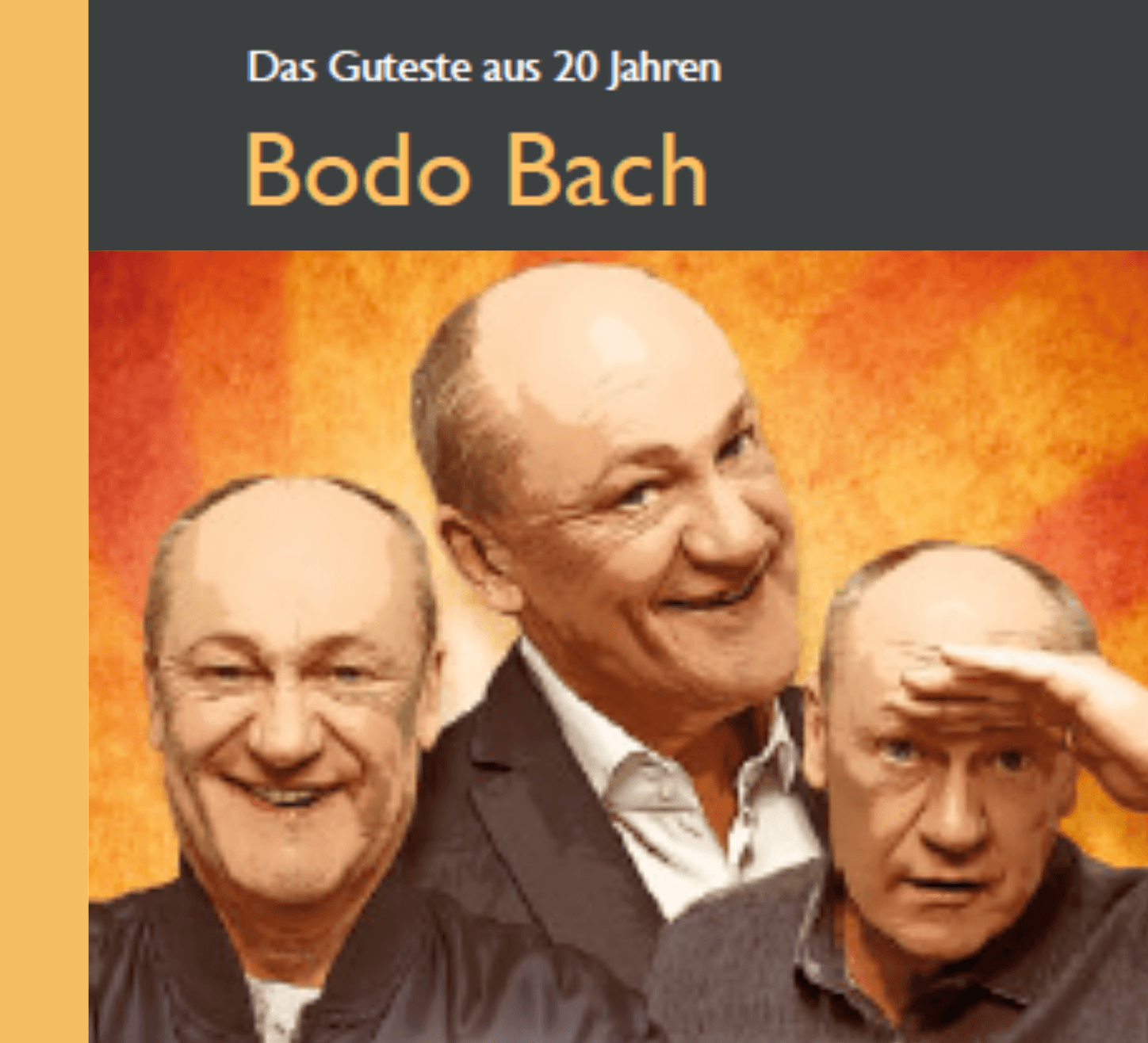 Freuen Sie sich auf zwei Stunden prall gefüllt mit garagengepflegten Gebraucht-Gags und natürlich den schönsten Bach- und Lachgeschichten seiner Karriere. Bodo ist älter geworden, vernünftiger aber nicht unbedingt. Auch auf seine alten Tage hat er nicht mehr alle Schnabeltassen im Schrank, aber er lernt immer noch gern dazu. Zu Beispiel weiß er jetzt: Ein „Seniorenstift“ ist kein Kugelschreiber für alte Leute. Irgendwie ist es also auch ein Bildungsprogramm. Bodo mistet sein Oberstübchen aus und stellt dabei fest: Blödsinn wird nicht blöder, sondern sinniger. Eine ganzen Abend lang hebt Bodo einen Sprachschatz nach dem anderen und erzählt noch einmal "Das Guteste aus 20 Jahren".