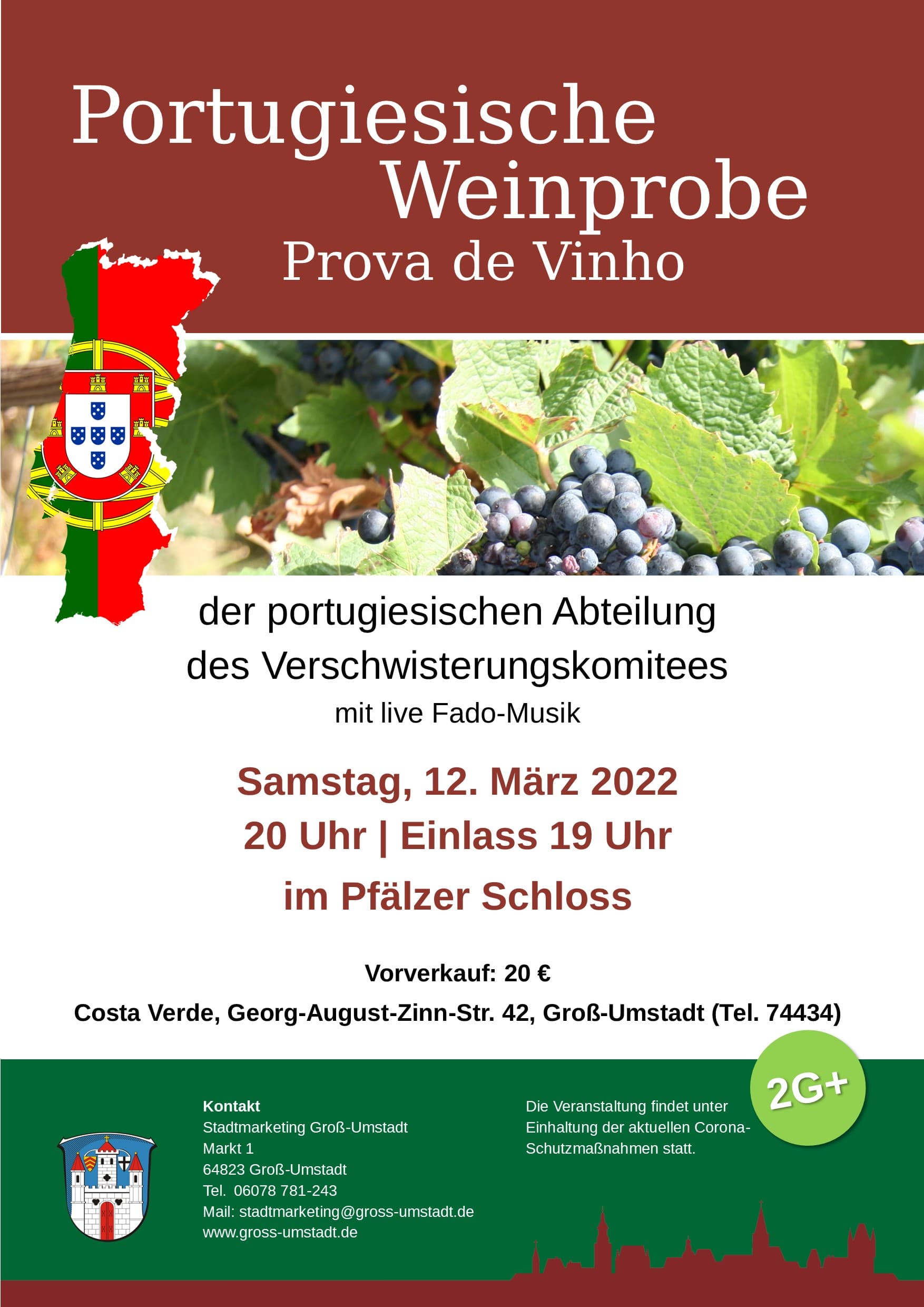 Zu einem Abend mit portugiesischem Flair lädt das Verschwisterungskomitee der Stadt Groß-Umstadt für Samstag, 12.03.2022, um 20 Uhr (Einlass 19 Uhr) ins Pfälzer Schloss ein.