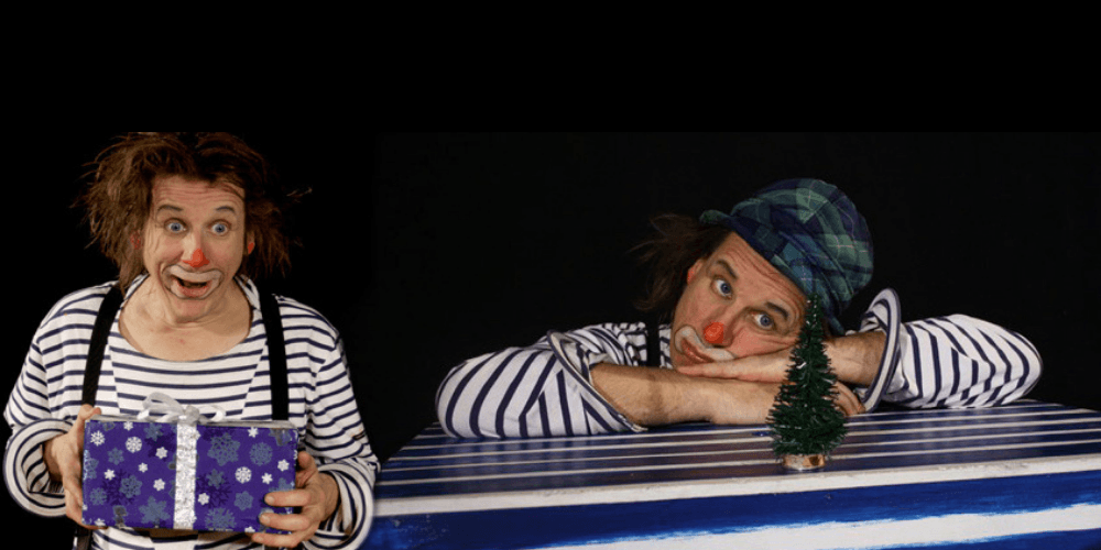 Ein Clown auf den Spuren des Weihnachtsfestes.
