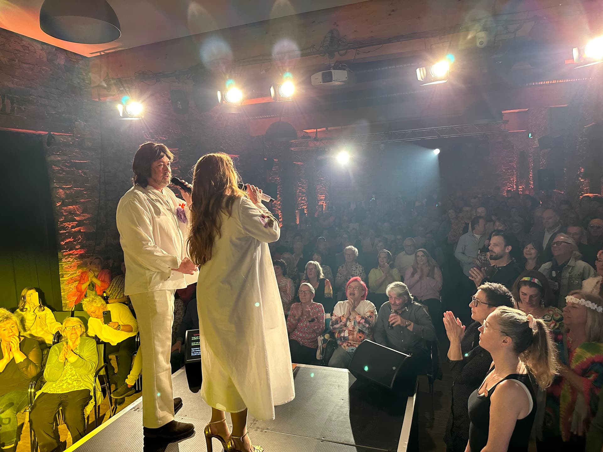 Erinnern Sie sich an die ZDF Hitparade? SCHLAGER PUR!! Dunja Koppenhöfer und Frank Zimmermann erwecken die Kultsendung wieder zum Leben und singen in ihrer sehr eigenen Art die schönsten Schlager der 70er Jahre: Von A wie Anita bis Z wie Zimmermann. Mit Dunja & Frank haben sich zwei gefunden, die der HITPARADE schon als Kinder verfallen waren und die den Glanz, Kitsch und die bunten Farben der nostalgischen Zeit mit dem Publikum feiern wollen. Die Songs der 70er Jahre mit der Freude an Plüsch, Schlaghosen und langen Haaren - in der ScheunenHitparade werden sie lebendig! Präsentiert wird die Show von Dieter WOLFGANG Heck! Welche vier Titel aus der sensationell erfolgreichen ersten Show wurden von den Zuschauern wieder gewählt? Sie werden es in der Show erfahren! Große Showbühne, grandiose Lieder zum mitsingen und ein tanzbereites Publikum verzaubern den Abend zu einer Zeitreise in die Zeit der Pril-Blumen und Plateau-Stiefel. Die Hälfte des Saals ist bestuhlt - die andere Hälfte mit Stehtischen lädt zum Tanzen ein.