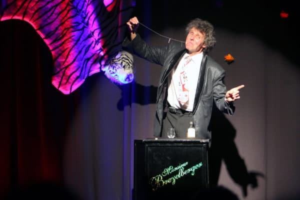 …der Kugelblitz des Varietés. Die Symbiose aus David Copperfield und Michael Schanze. Wer Brezelberger schon mal erlebt hat, weiß um den schmalen Pfad zwischen genialer Zauberei und grandiosem Scheitern.